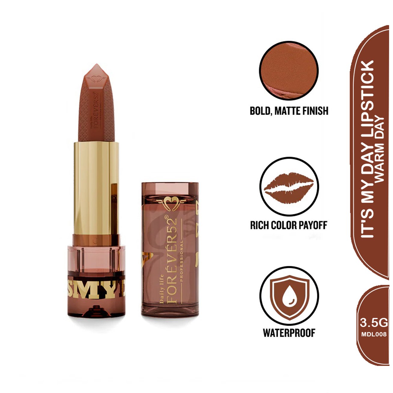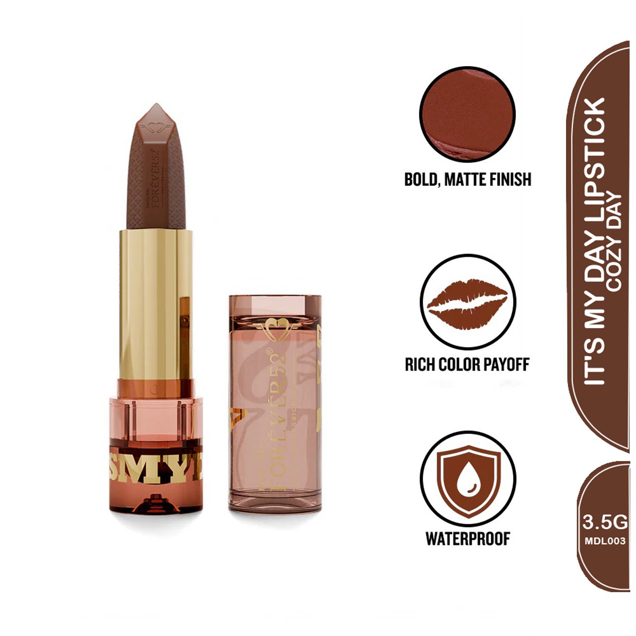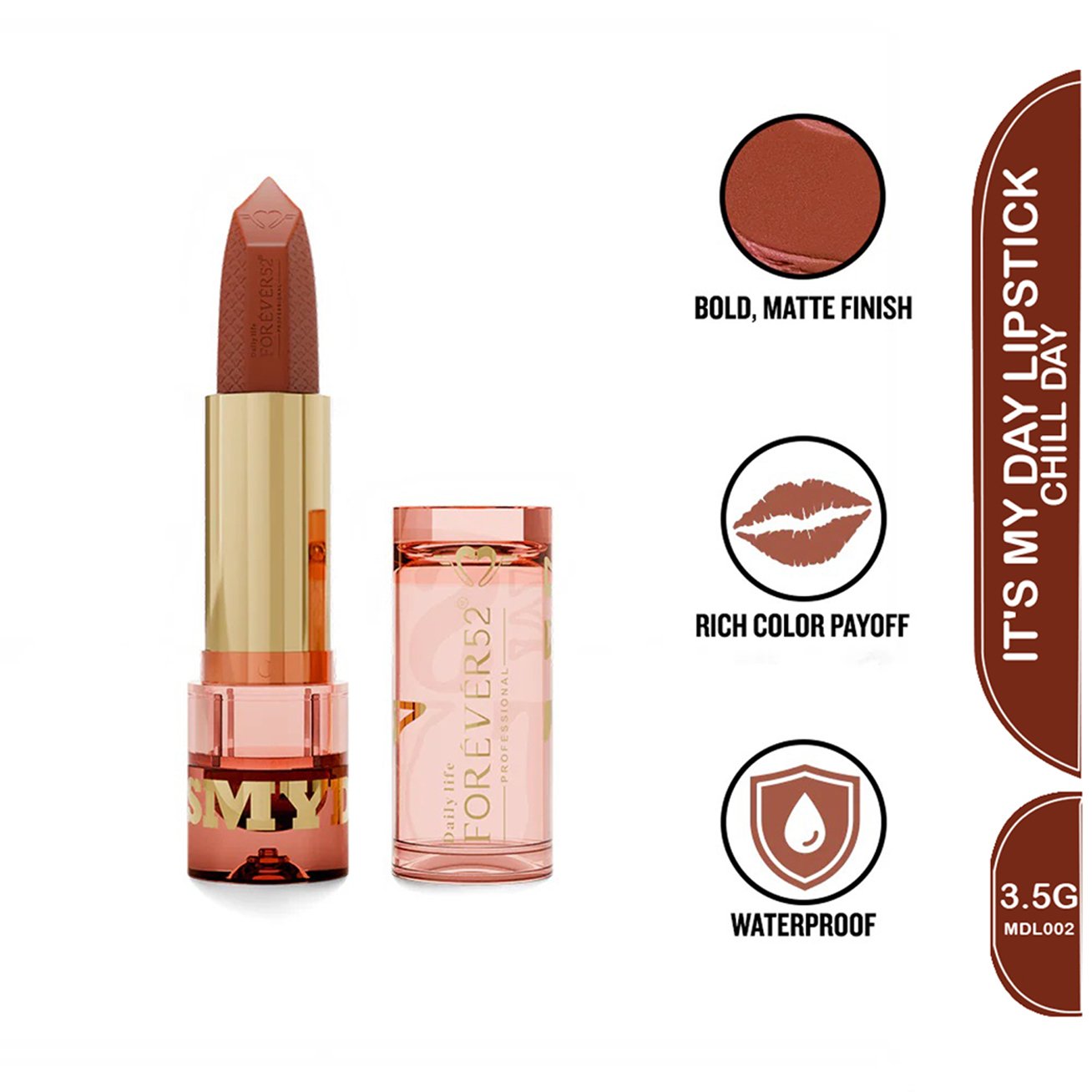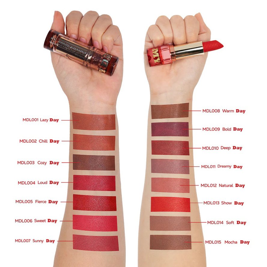 Get ready to step into bold, confident color while giving your lips the care they deserve. Its My Day Lipstick delivers a creamy, matte finish with rich, highly pigmented shades that glide on smoothly for one-swipe perfection. Infused with nourishing ingredients, it keeps your lips hydrated, soft, and protected – no cracks, dryness, or peeling. With every swipe, your lips look fuller, smoother, and ready to make a statement, making it the perfect everyday lipstick that feels as good as it looks.