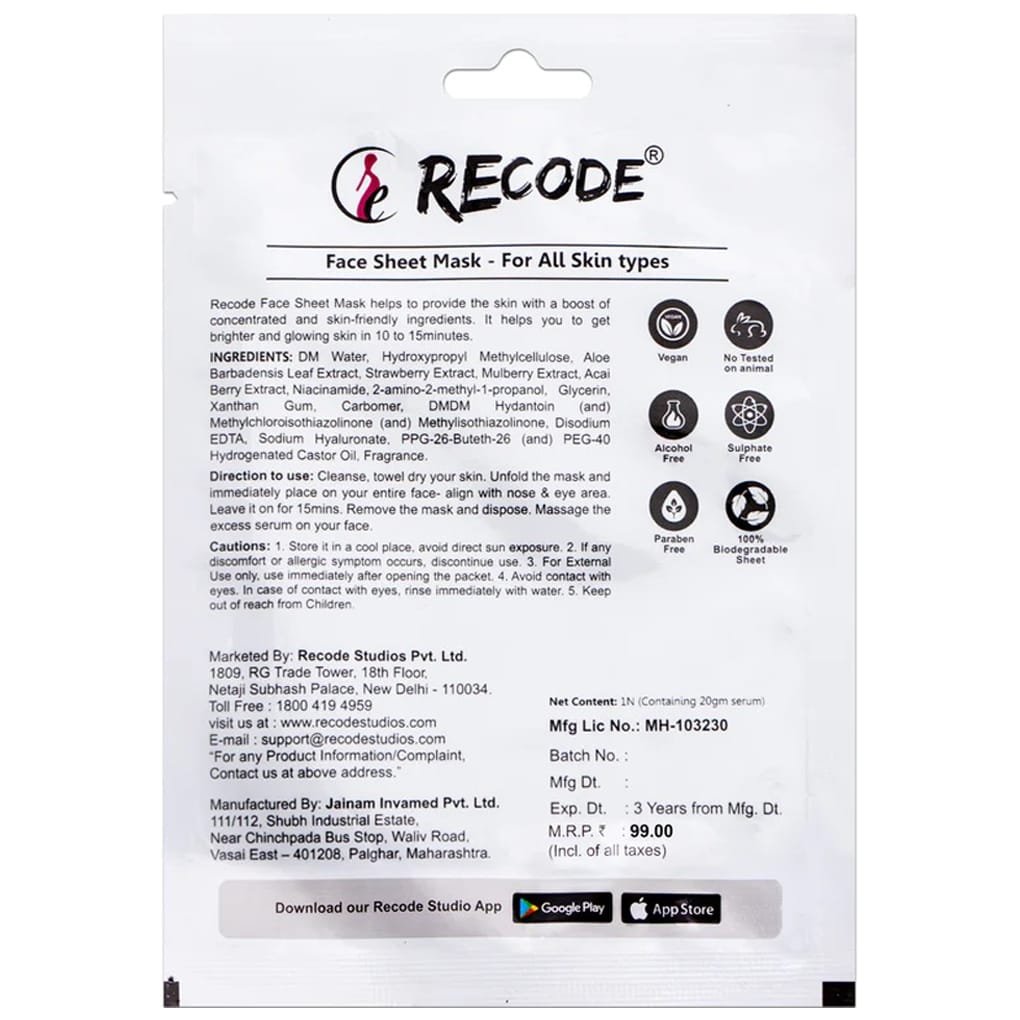 Recode Face Sheet Mask 1 20G