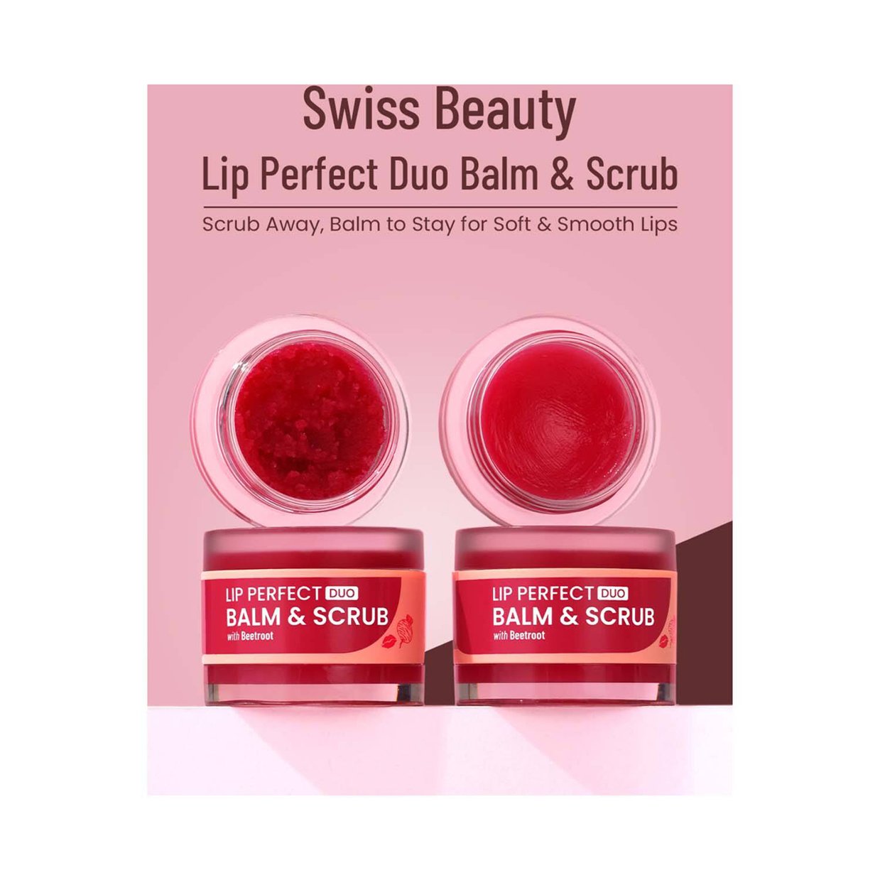 Includes a lip scrub and lip balm to give the lips a soft and radiant appearance